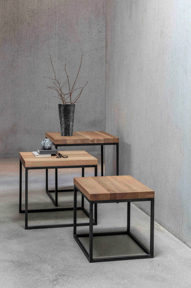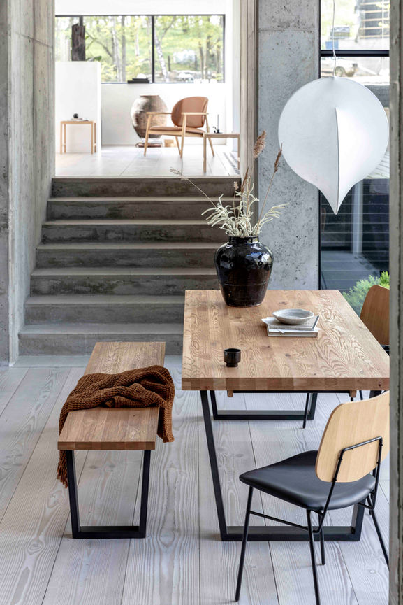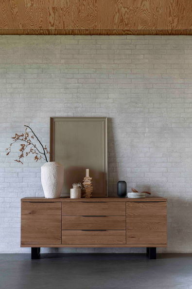 Made predominantly from solid American white oak, Calia has a wire-brushed, distressed finish that offers a rustic look and tactile feel, making the most of the beautiful natural grain. This rough-and-ready appearance is enhanced with the inclusion of welded iron bases and handles, giving the range an industrial, vintage edge.